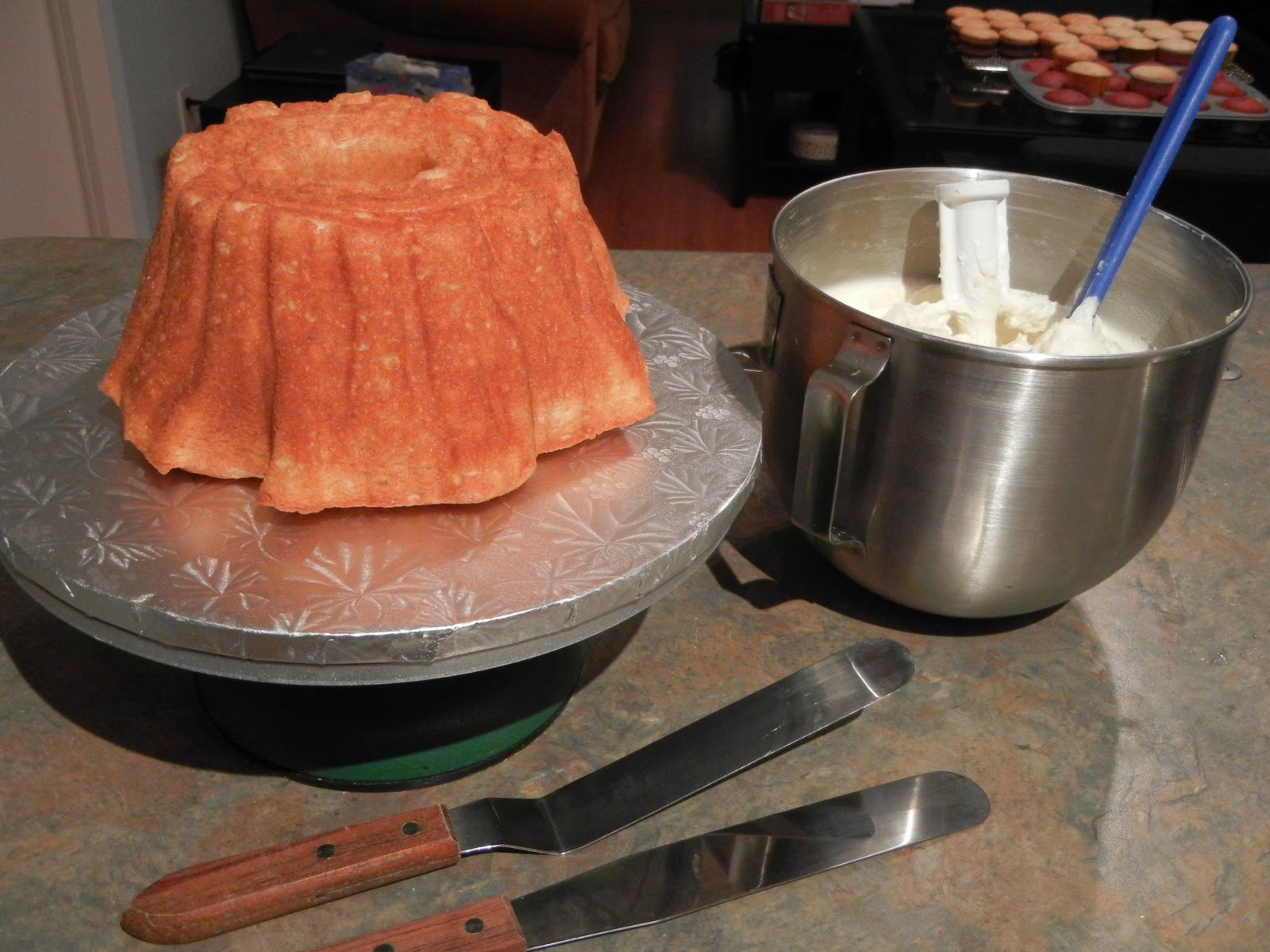 I finally finished the stump cake, it baked up pretty nicely. I filled the pan 3/4 full so that it woudn't over flow once the leveners reacted with the heat. After I masked the cake I put it in the fridge for at least 45 minutes so that the frosting would harden. To make wood grains I just lightly scratched the fondant with a paring knife. I also used royal icing as snow on the cake board and sprinkled it with white sugar to make it look sparkly. The royal icing was also used as glue, for sticking the gum paste figures around the cake.